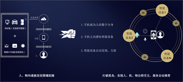 科技的一大使命,就是打破用户与设备之间的藩篱。如何将无连接无智能的“哑设备”(如汽车、电视等)和智能IoT设备(如路由器),通过信息世界链接到手机,再通过手机呈递至用户手中,成为了整个行业都在关注的焦点。华为在手机中增加主动感知智能设备的功能,实现了智能设备的自动发现、互联,最终让手机成为了人的数字分身,真正做到了“冲破三层围墙”。