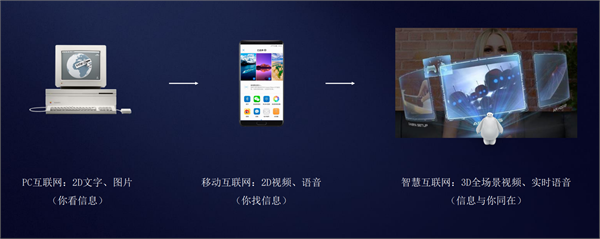 随着手机性能的高速增长,手机如今已取代电脑和电视,成为用户获取信息最重要的一块屏幕。在PC和互联网方兴未艾的年代,由于带宽的限制,用户往往只能以“看”的形式来获取2D的文字、低清图片等信息,如今,这一模式早已被时代所抛弃;随着智能手机和3G/4G网络的普及,视频、语音等2D形式的信息流,逐渐让用户习惯了去寻找信息;那么,人机交互的未来在哪?华为率先提出了智慧互联网的概念:3D全场景视频、实时语音的沉浸式交互体验,让用户真整感受到“信息与你同在”的理念。