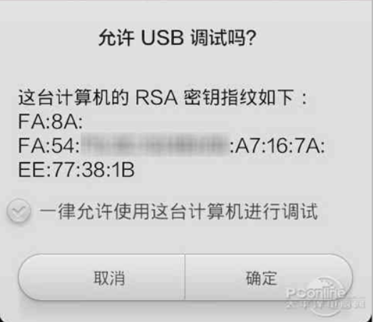 当安卓手机弹出是否允许USB调试?时,我们一定要点击“取消”并立即拔下充电线,停止充电。