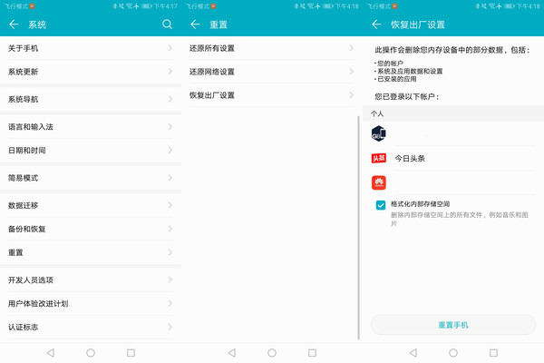 另外,安卓机型在回收或出售前,应恢复出厂设置并抹除全部数据。