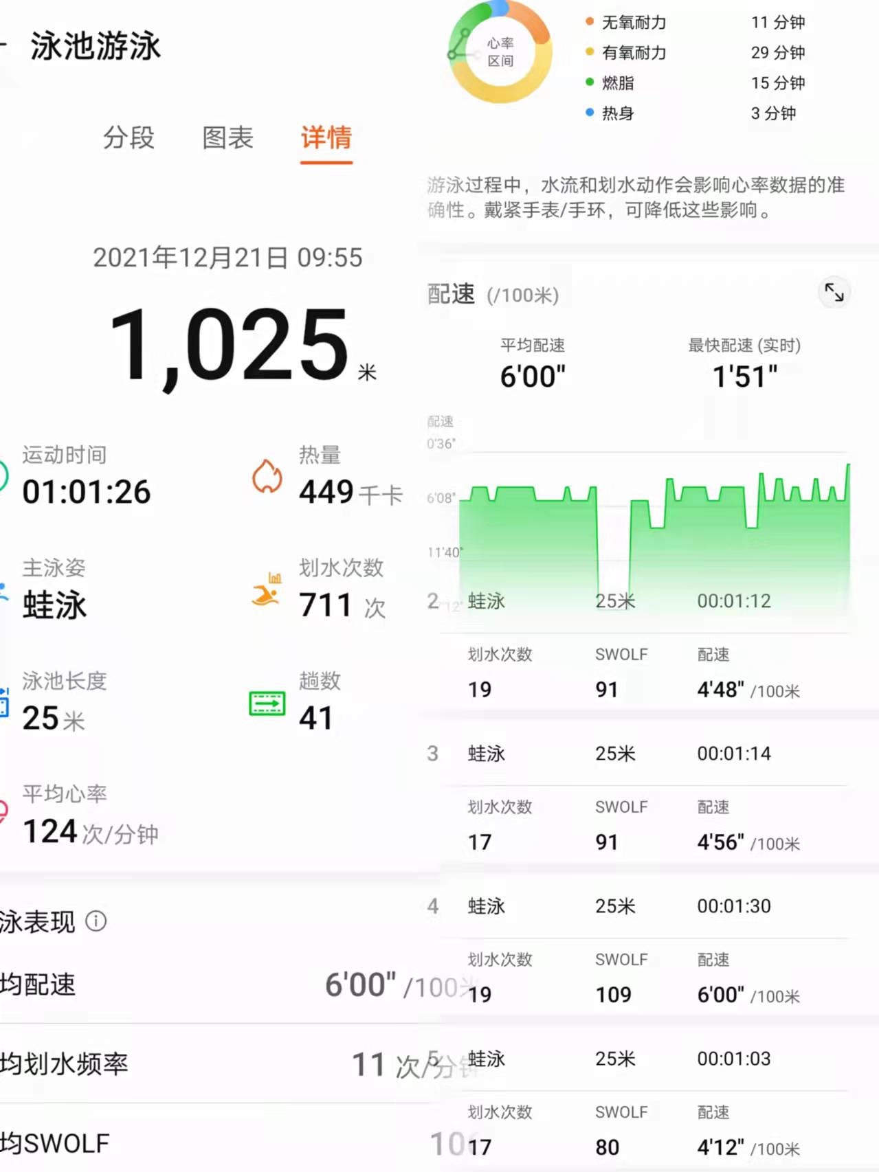 第二次测试,泳池游泳1小时。