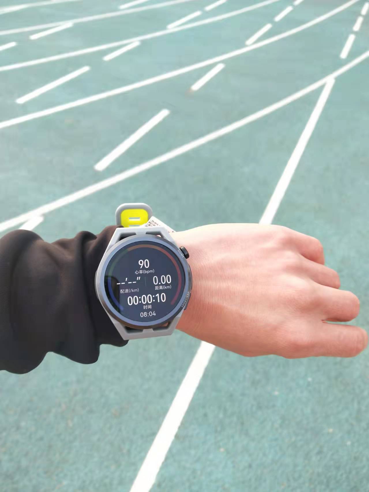 很多手表跑操场不准,通过轨迹图可以看出华为 WATCH GT Runner给出了相当漂亮圆滑的弧线,左上方突出那个角落是跑步约3公里跑热后去场地边脱外套,清晰明确的独立轨迹说明其在单位时间内与导航卫星的连接频率很高,所以华为 WATCH GT Runner定位准确性可以精确到0.2米以下甚至更低。换一种说法,很多人都有过在操场的转弯弧线位置跑出直线或者菱形轨迹的经历,直线菱形是因为手表与卫星2次的连接时间过长,平时跑直线时候察觉不出,当遇到弧线或者转弯时,手表记录2次卫星连接点位,两单之间线段最短,所以就会把弧线或者转弯记录成直线,从而导致数据不准确。所以,以华为的技术实力,超强的稳定的定位能力,马拉松赛道般准确的轨迹是这款跑步手表最基础的核心能力!当跑步轨迹、时间、配速等记录准确了,才可以去衡量心率、跑力和智能陪跑等功能的强弱,才可以更好的指导自己去健康的运动。