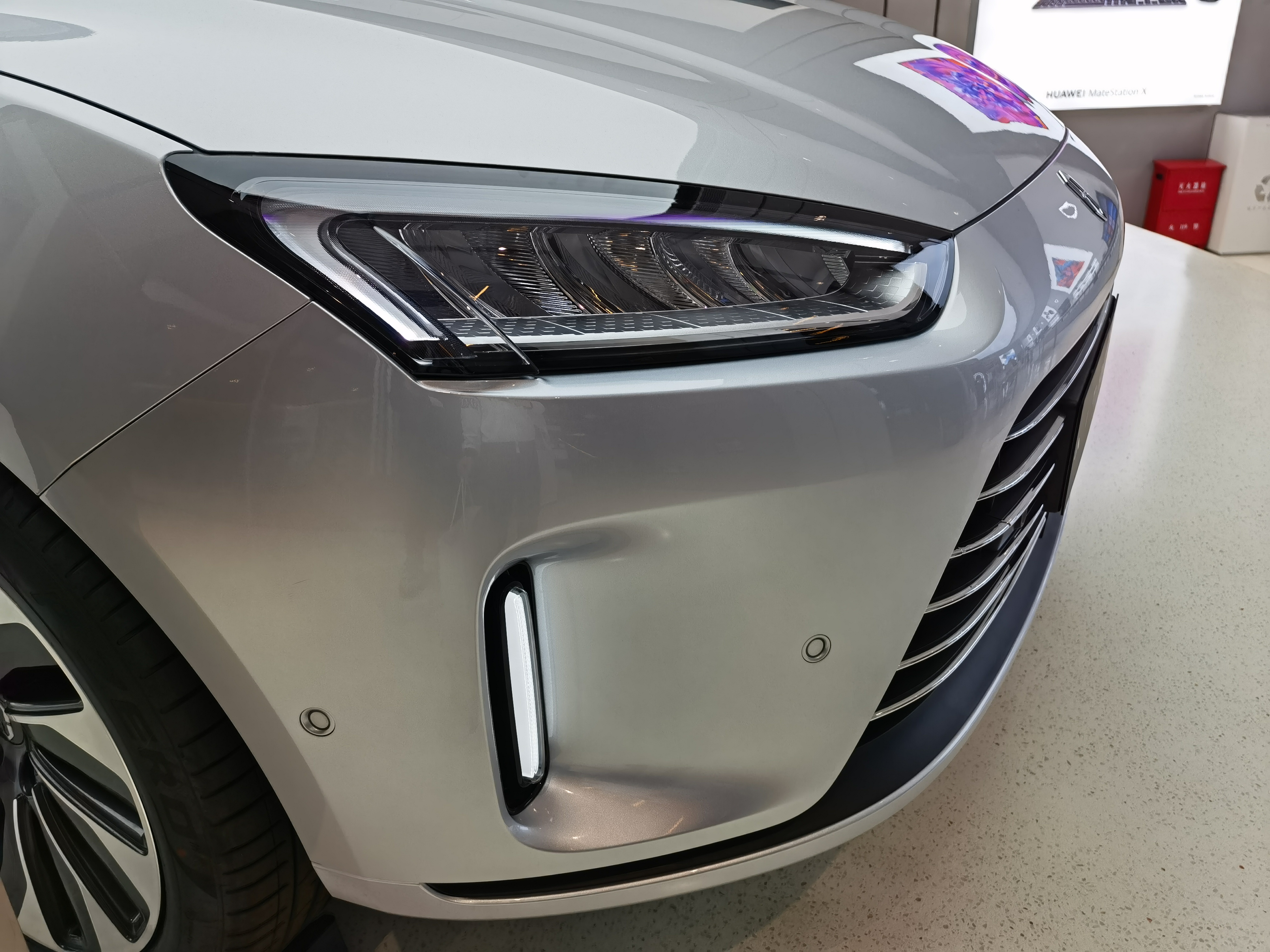 前车灯如同人的双眼,格外强调锐利的设计,尤其是SUV这类奔波在远方流途的运动型汽车,更需要在前车灯上勾勒出锋芒正盛的轮廓。如同富有能量的眼神外露一样,问界M5设计出上挑锋锐的前车灯,除了转角处留有微弧用以过渡外,以直线为主元素的设计意气风发,与当下追求圆滑的时代对比凸显鲜明反差。