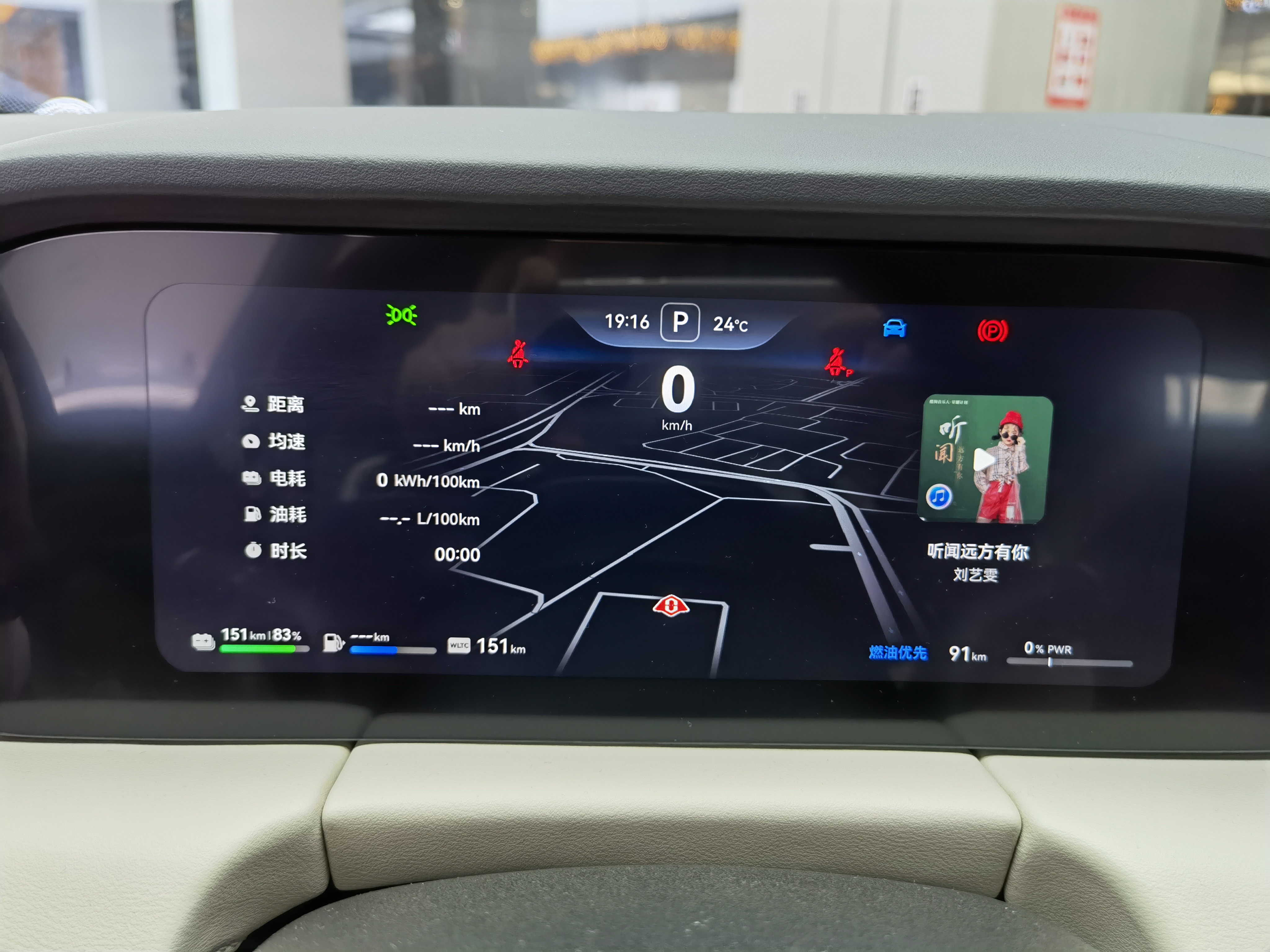 正对方向盘前方的是液晶仪表盘,不仅各项速度、里程、油耗等数据整齐地显示在荧幕上,而且歌单、道路实况等等信息也得以呈现。各类资讯排版合理整洁,并不因为信息量大而冗杂臃肿,行驶需要获取的信息一览无遗,并不需要花费精力解读。