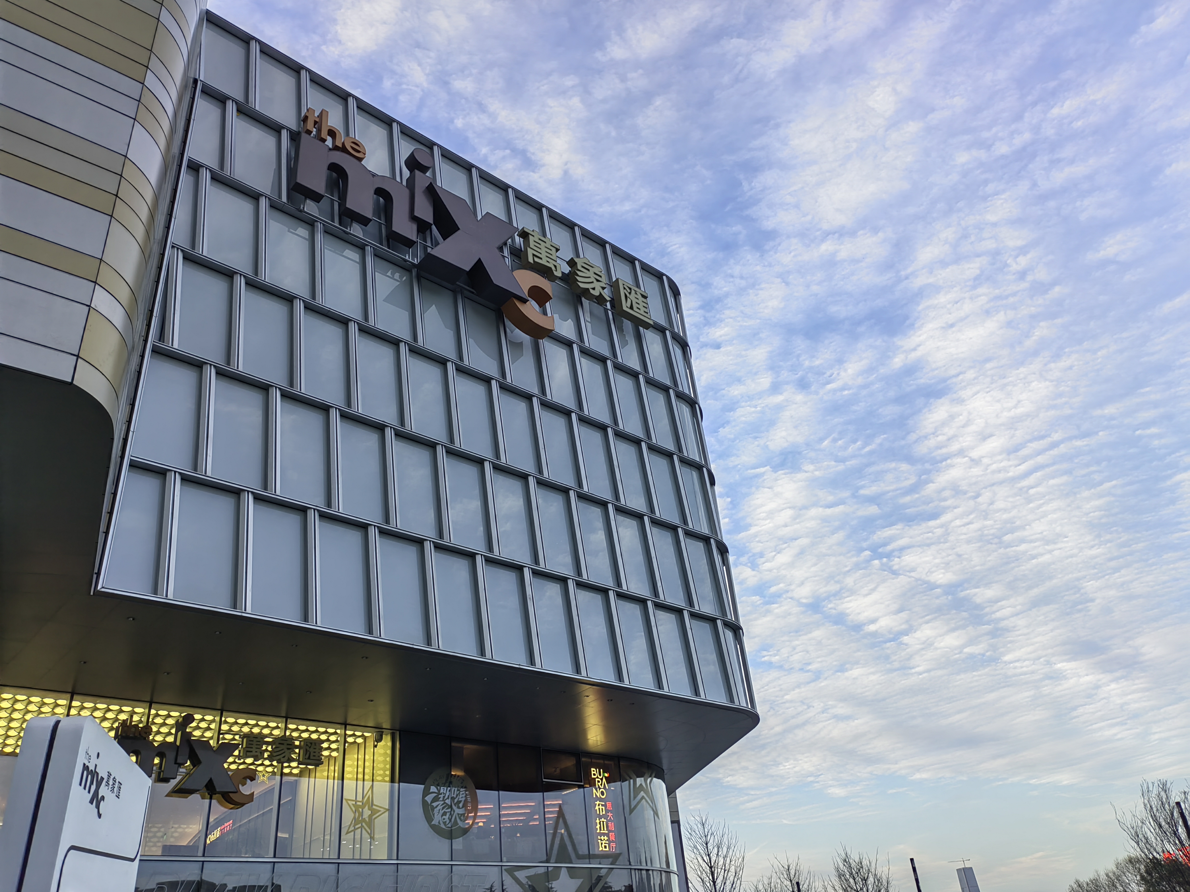 傍晚时,夕阳西下,在广场时拍摄蓝蓝的天空也很不错,云彩与建筑物结合在一个画面中,显得非常和谐。