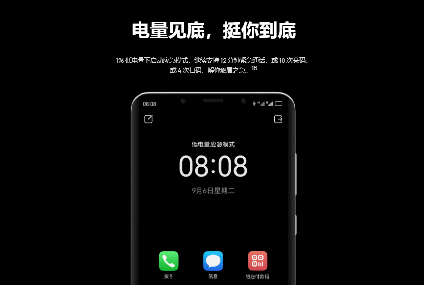 说到续航,华为Mate50系列还有一个应急的黑科技,虽然还没有真实体验过,但据说可以在电量剩下 1% 时候开启应急模式,在这个模式下可以支持 12 分钟的紧急通话,或者 10 次的亮码或者 4 次扫码操作,可以解决出门手机没电寸步难行的燃眉之急。