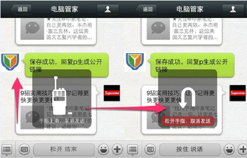 当你按住了语音,但又不想发布的时候,怎么办?这时只需手指不要放开,向上滑动即可取消发送。