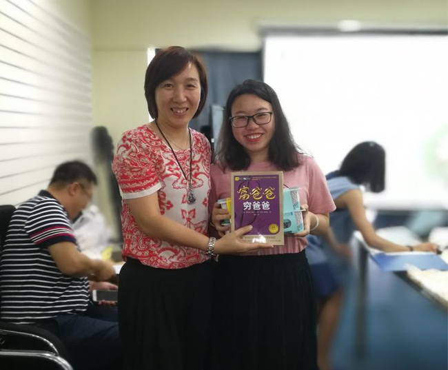 接着,行政管理中心的张桂华给我们分享了《穷爸爸富爸爸》这本书,并用标准的“广式煲冬瓜”声情并茂地朗读了书里的精彩片段!